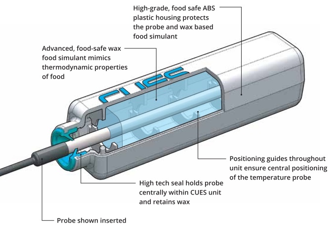 Expertly designed in the UK to fit its purpose and operating environment, the CUES consists of a wax-based food simulant, which imitates the thermal properties (such as thermal conductivity and thermal mass) of the food products inside your refrigeration unit.